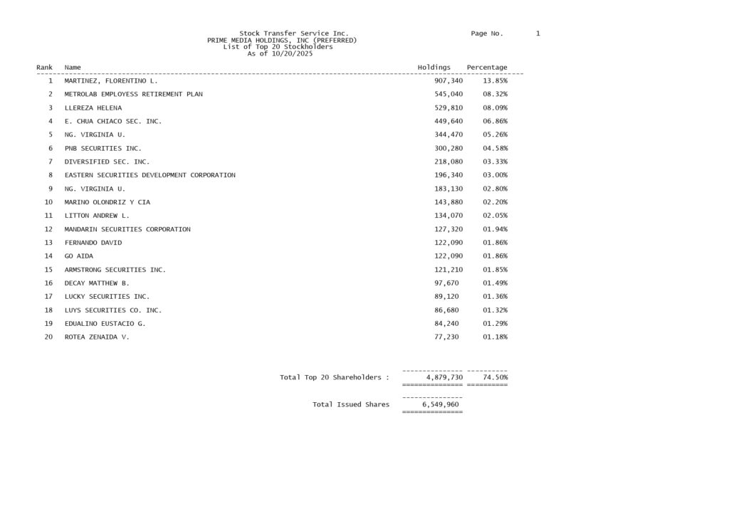 Investor Relations Share Information TOTAL OUTSTANDING SHARES: COMMON: 940,403,854 PREFERRED: 654,960